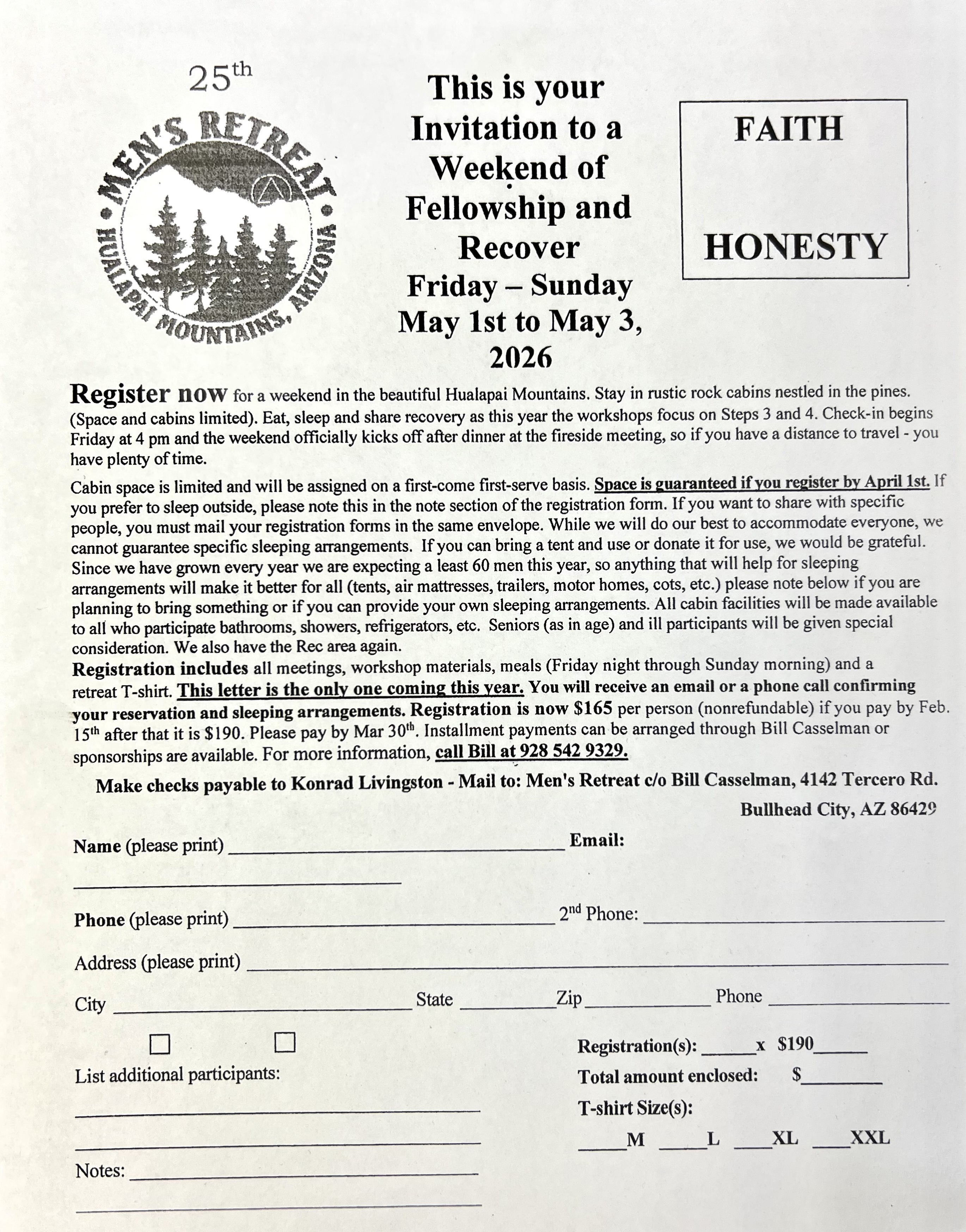 Our event.on the beautiful Colorado River will be filled with meetings, fine fellowship, inspiring and humorous speakers, and more fun than ever. If you have never been, you owe it to yourself to come.